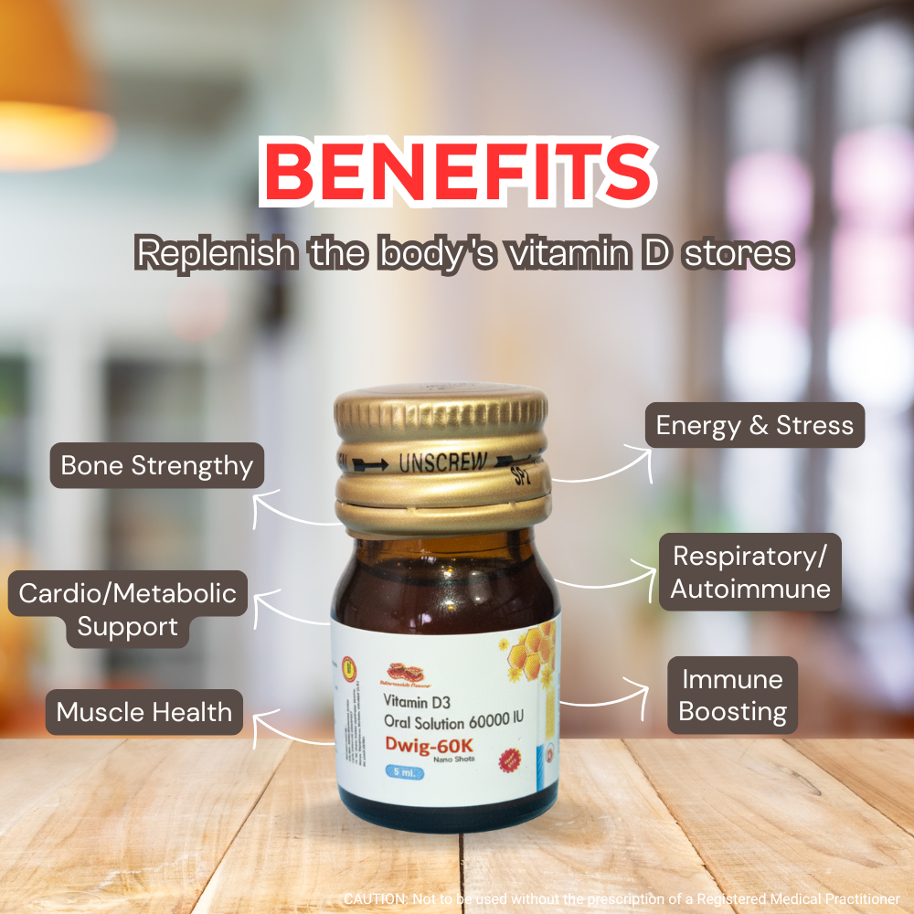 Key Ingredients :- Cholecalciferol IP 60,000 IU (in 5ml solution).