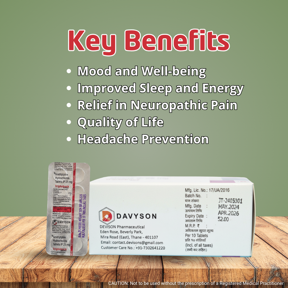 Key Ingredients :- (Per Tablet) Amitriptyline Hydrochloride IP 25mg